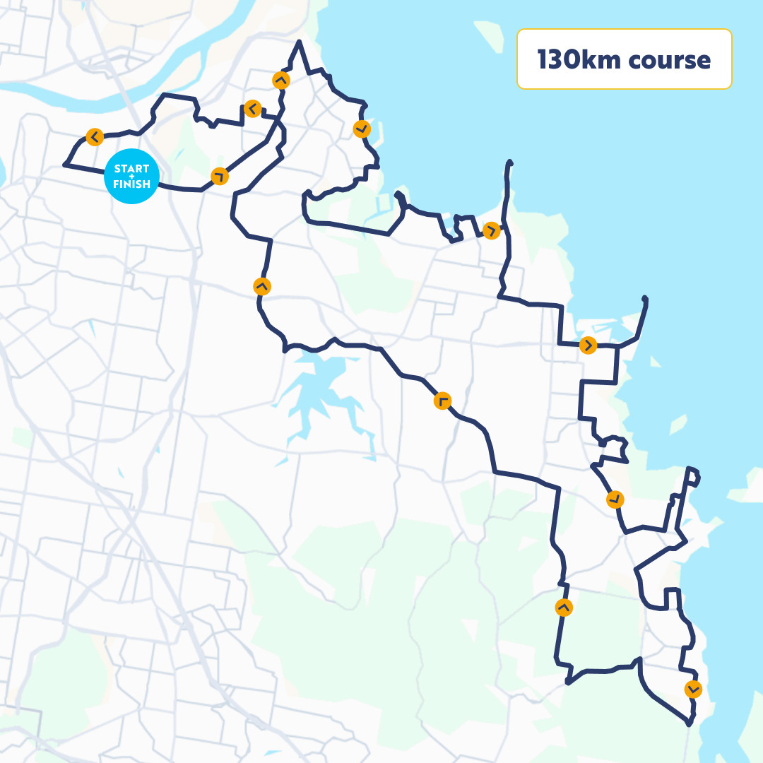 The brand new 130km course is the ultimate test of grit, determination, and endurance. Starting at the world-class Brisbane International Cycle Park, this epic ride has more Bay than ever. You’ll cycle all the way to the shores of Redland Bay, but not before heading through Wynnum and past the stunning esplanades of Manly, Wellington Point, Cleveland, and Victoria Point - showcasing the very best of the Bayside’s iconic scenery. Not for the faint of heart, this challenge will push you to your limits right from the start. This is a course for those who thrive on the thrill of conquering the toughest challenges. This ride is your chance to do more for those living with MS and neuro conditions and prove what you're made of.